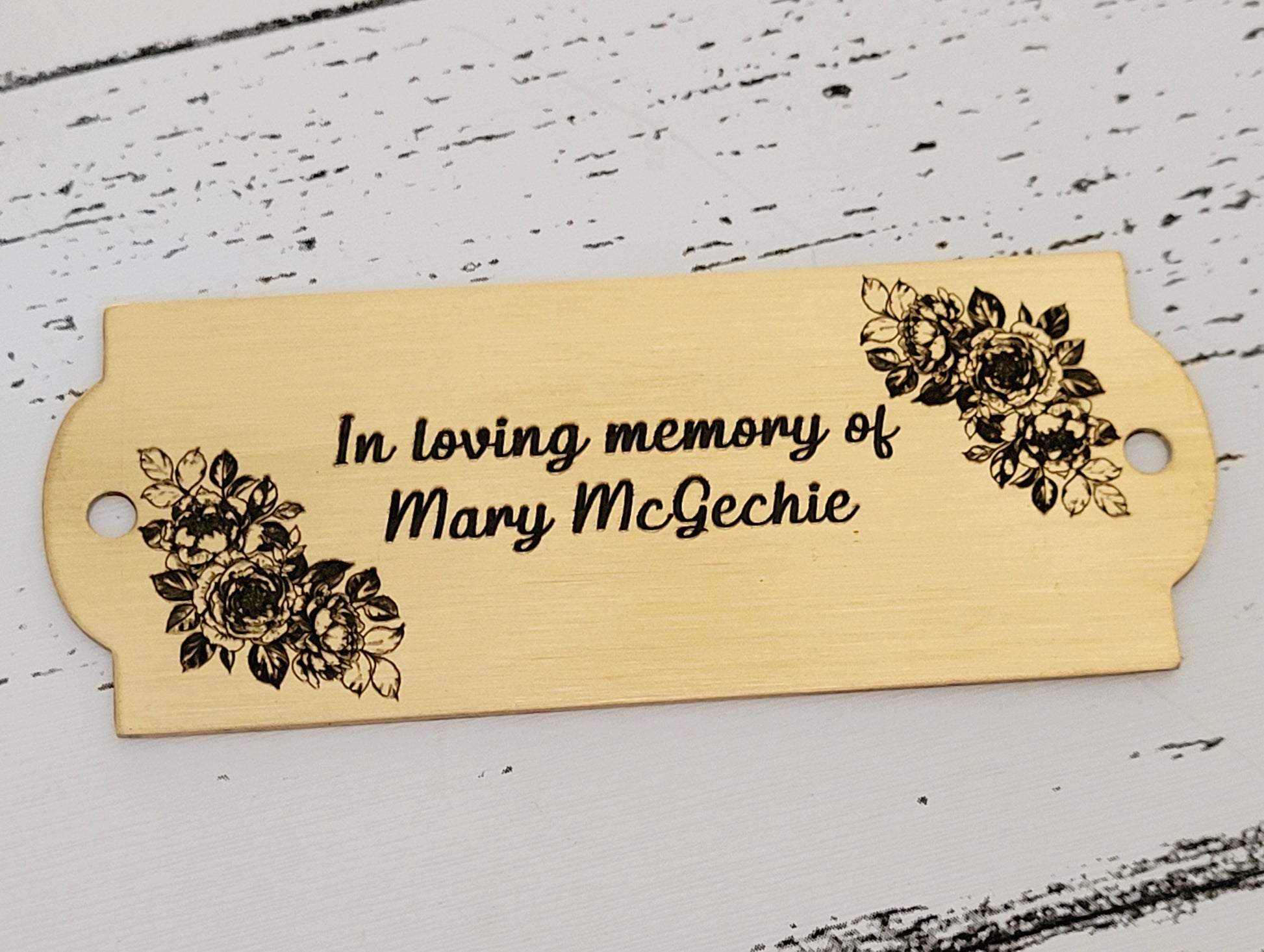 Bench plaque, Pet kennel /hutch name coated brass plaque, design can be changed