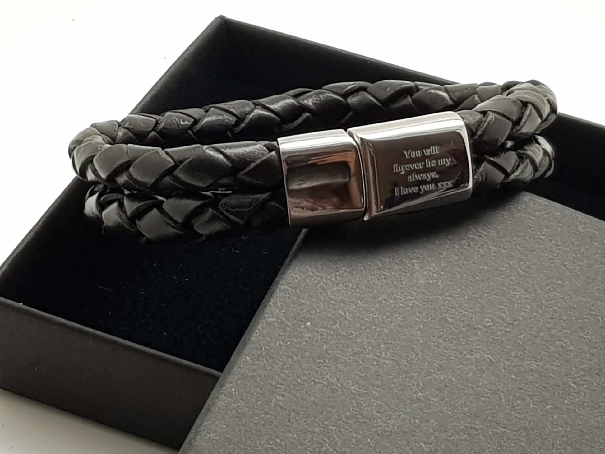 Gorgeous, genuine leather, made to measure bracelet with the text of your choice back and front.