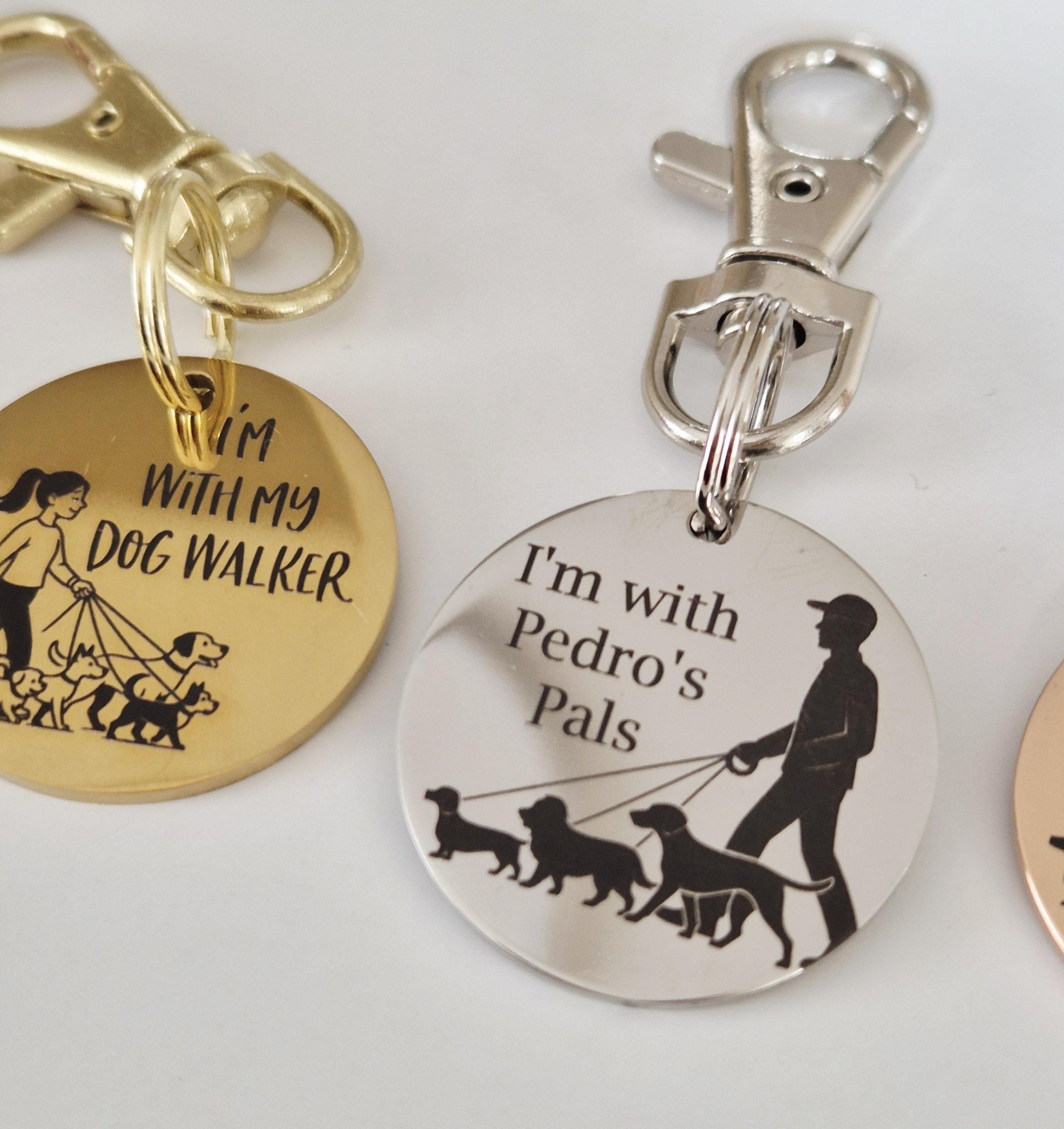 I'm with my dog walker, dog ID tag set with lobster clasp. MULTI SAVE