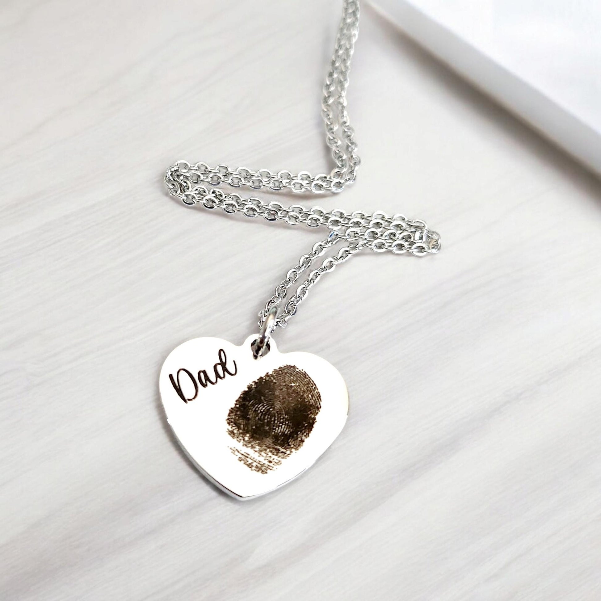 Laser Engraved finger print or photo 20mm pendant and necklace with gift box. Engraved from any clear image. Silver, Rose Gold or Gold.